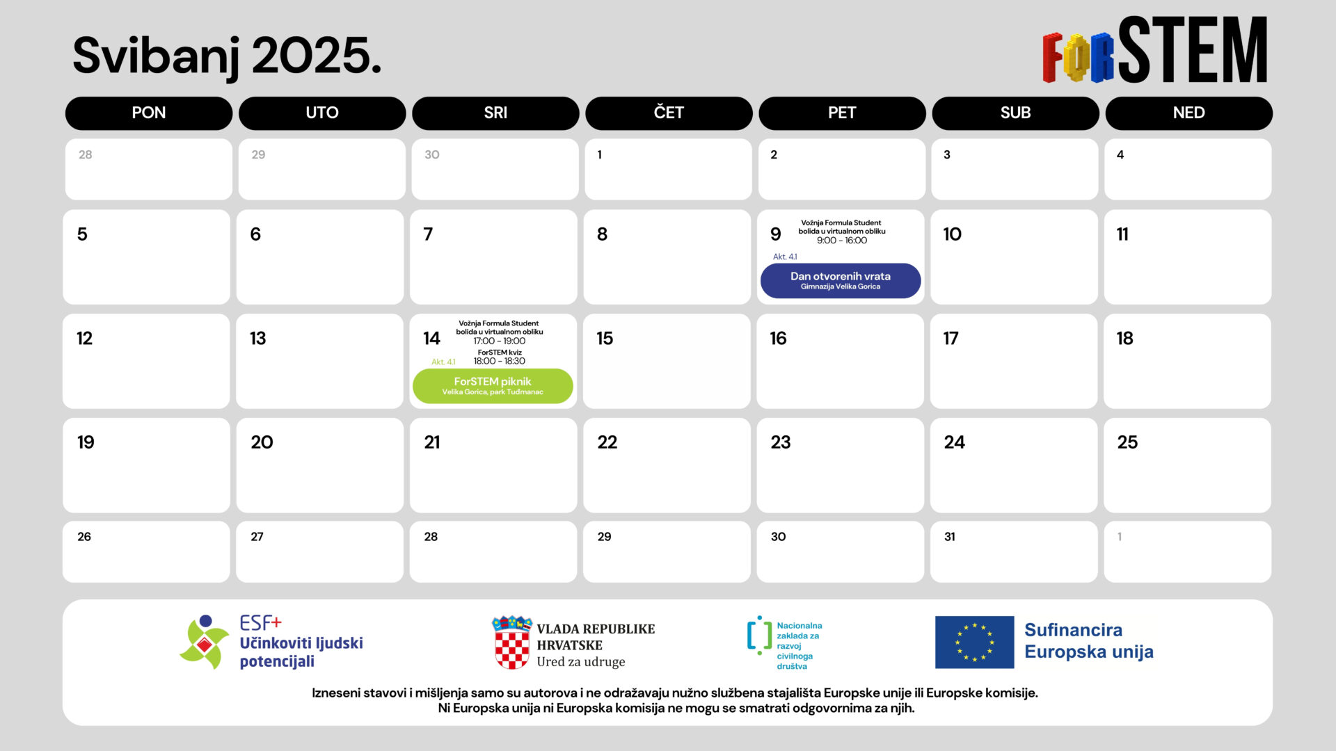 U svibnju 2025. ForSTEM nastavlja svoju misiju popularizacije STEM područja među učenicima kroz interaktivne sadržaje i zanimljiva događanja. Kroz spoj edukacije, tehnologije i zabave, učenici će imati priliku doživjeti svijet znanosti i inženjerstva na kreativan i pristupačan način.